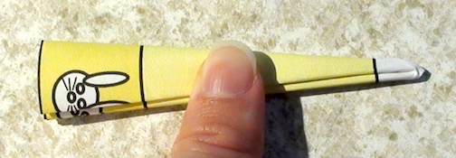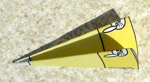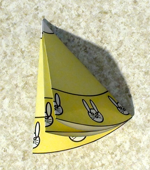 Take the circle and fold it in half. Then fold it into quarters and keep folding it in half until you can’t fold it any more. Carefully crease your folds so they’ll stay in place.